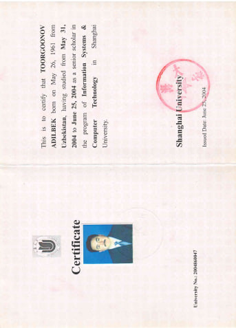 1997-1999 yy. - Oʻzbyekiston Respublikasi Fanlar Akademiyasi kibernetika instituti doktoranti