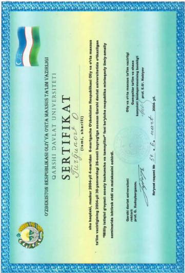2000-2001 yy. - Qarshi davlat universiteti astranomiya va fizika oʻqitish metodikasi kaf. dotsenti